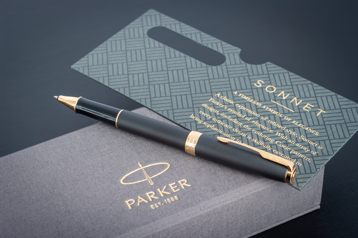 Ручка роллер Parker Sonnet Matte Black GT от официального дилера Parker в Орле. Вы можете дополнительно заказать гравировку, которая подчеркнет Вашу оригинальность и придаст памятность статусному подарку. Все ручки Паркер поставляются в фирменном футляре.